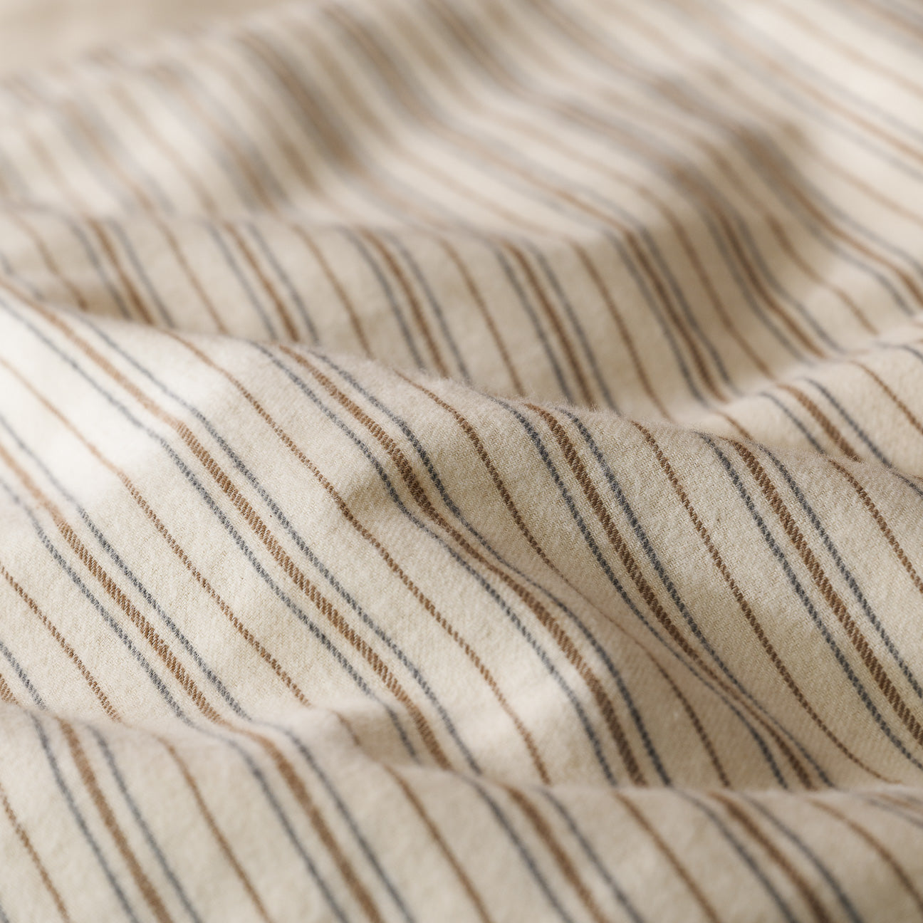 Unsere Flanell-Designs vereinen Wärme mit zeitloser Eleganz. Die Variante Creme zeichnet sich durch edle Streifen in Braun und Blau aus, während Antrazit ein elegantes Fischgrätmuster zeigt, das durch die Kombination von cremefarbenen und anthrazitfarbenen Garnen entsteht. Beide Designs sind aus garngefärbtem Baumwollgewebe gefertigt und garantieren Farbtiefe und Langlebigkeit, die über Jahre hinweg Bestand haben.