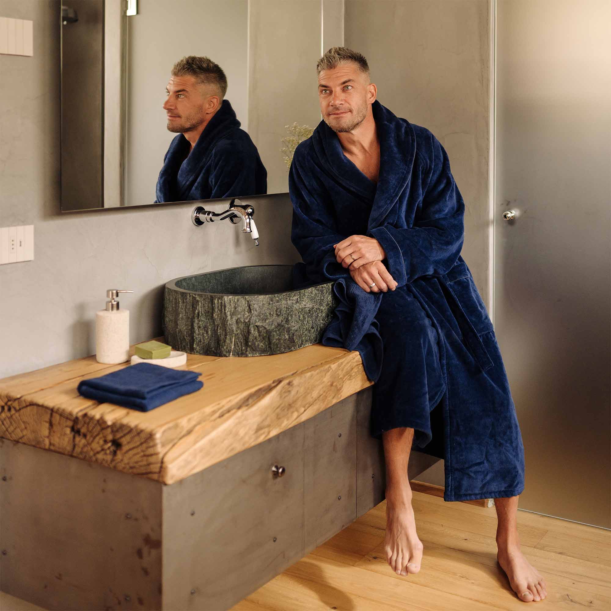 Der Superior Frottierstoff von Dalfilo besteht aus 450 gr/m² reinem, gekämmtem Baumwollstoff auf der Außenseite. Elegantes Aussehen und unvergleichliche Weichheit für das ideale Komforterlebnis.