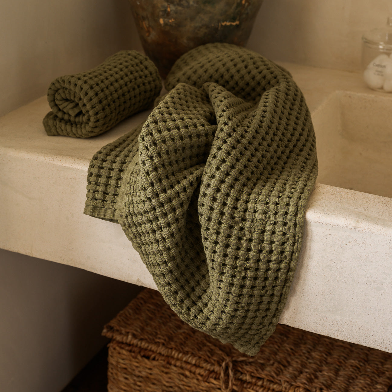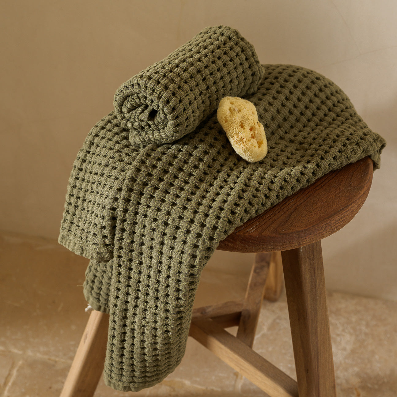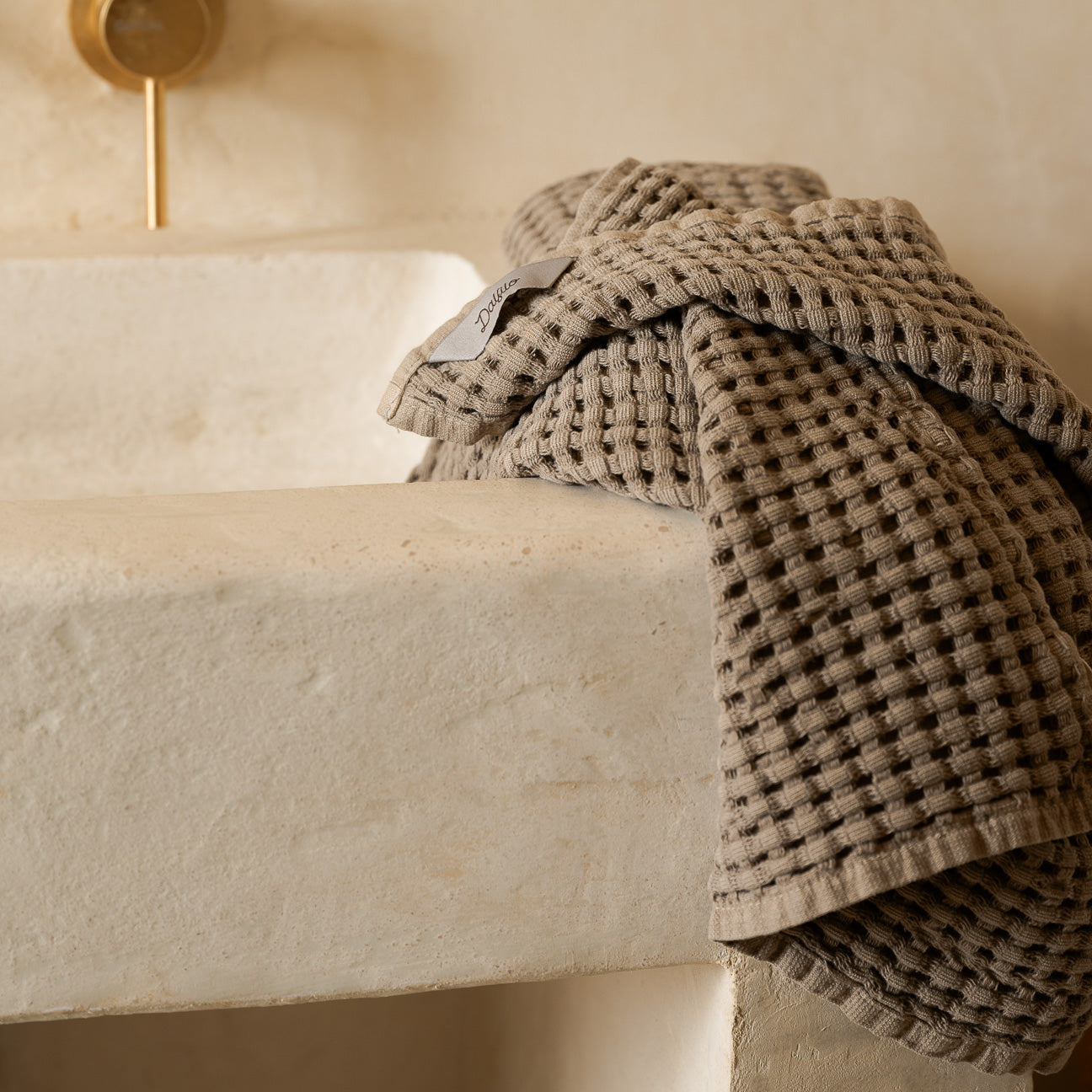 Tauche ein in ein Meer von Stil und Luxus mit unserer auserlesenen Waffelpiqué Stonewashed-Linie. Die Handtücher und Bademäntel aus feinstem Waffelpiqué-Material aus 100% Baumwolle bieten sanfte Reinigung und schnelles Trocknen, und verwandeln dein Badezimmer in eine Oase der Eleganz und des ultimativen Komforts.