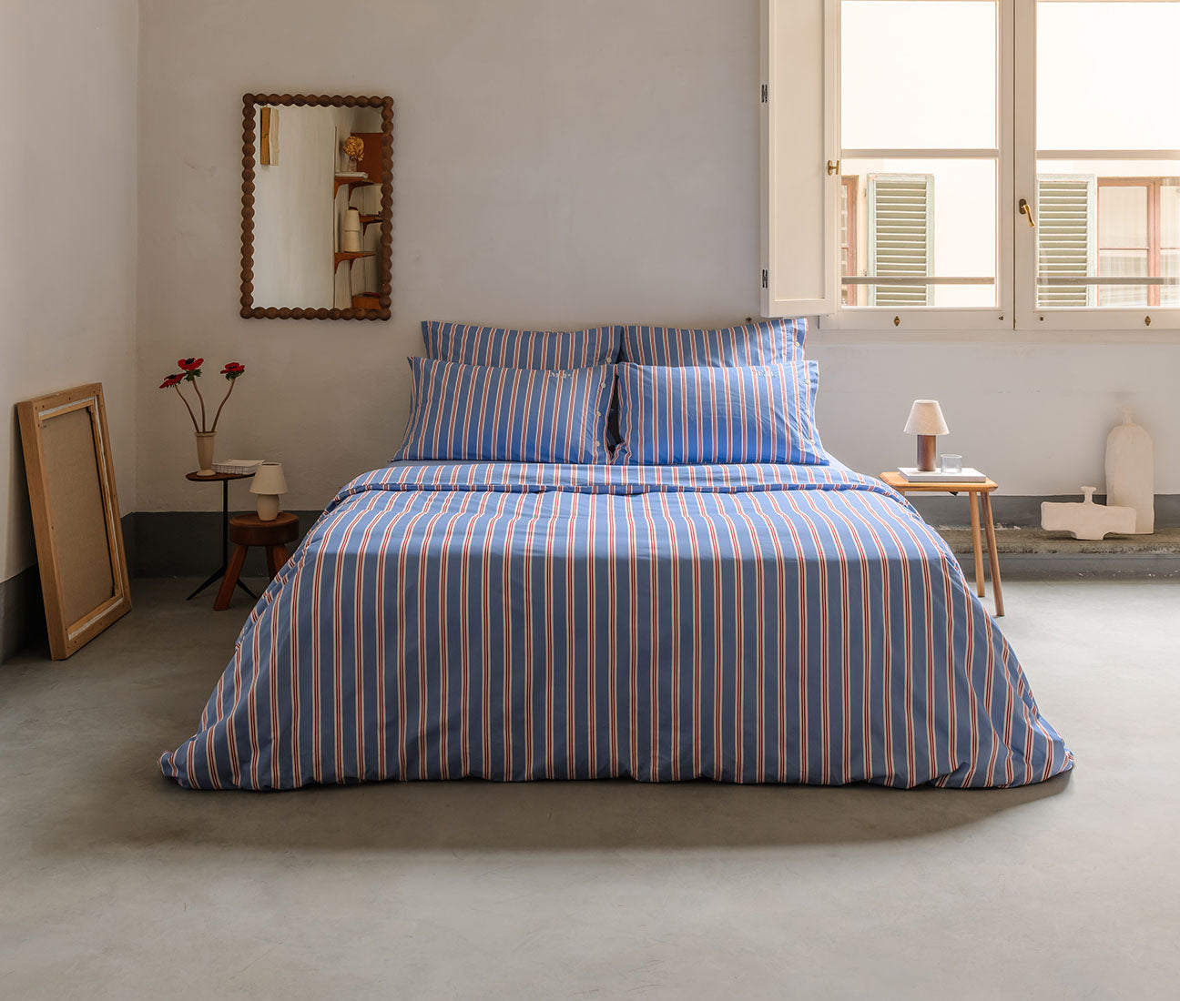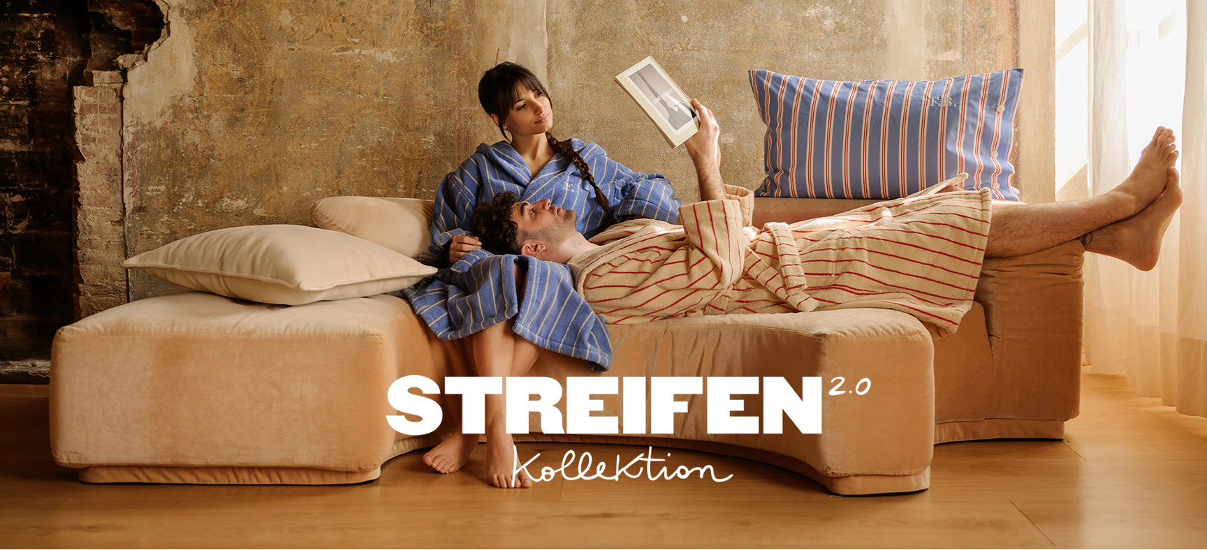 Ein dynamisches Muster, das die Bettwäsche-Kollektion schmückt und erstmals auch in das dein Bad schmückt