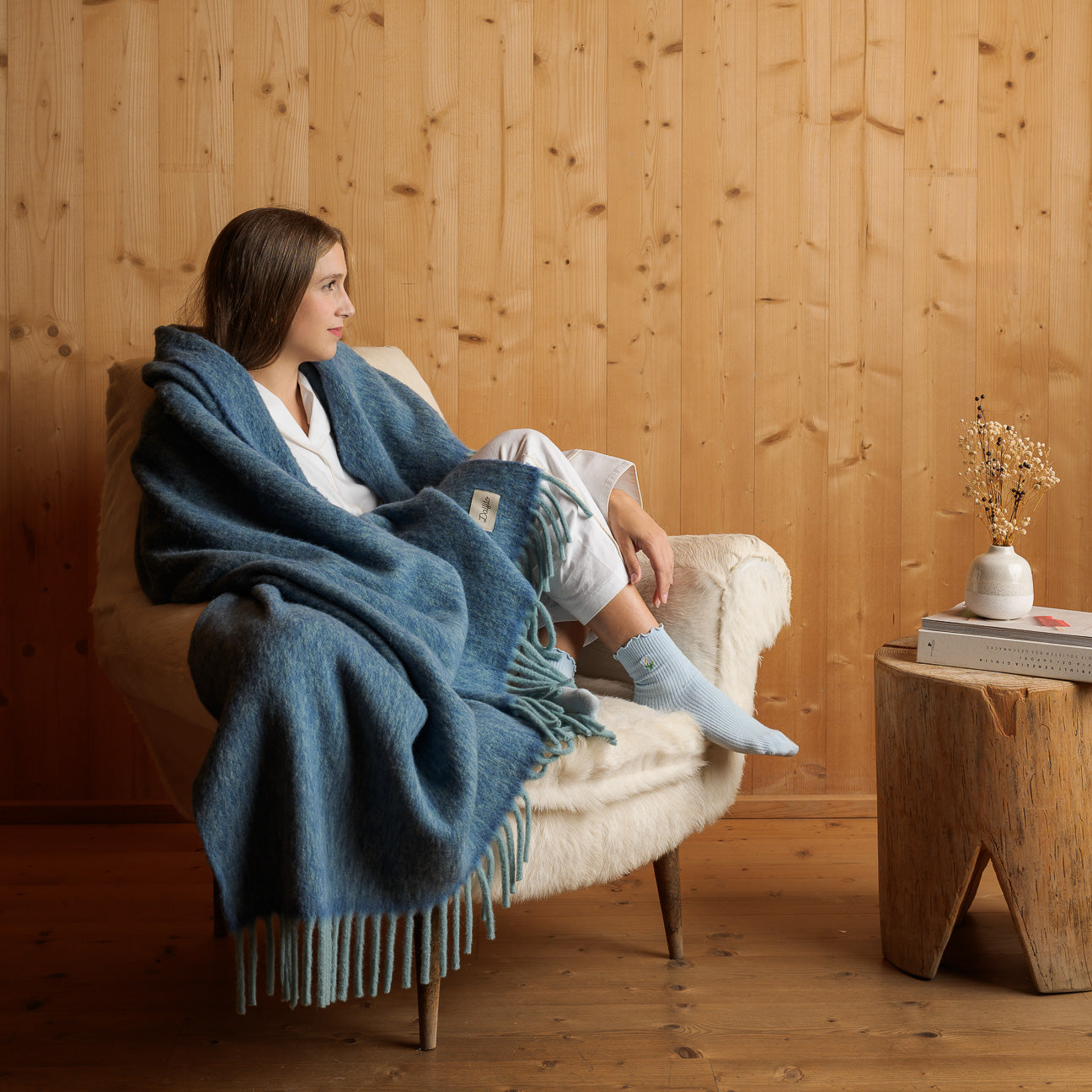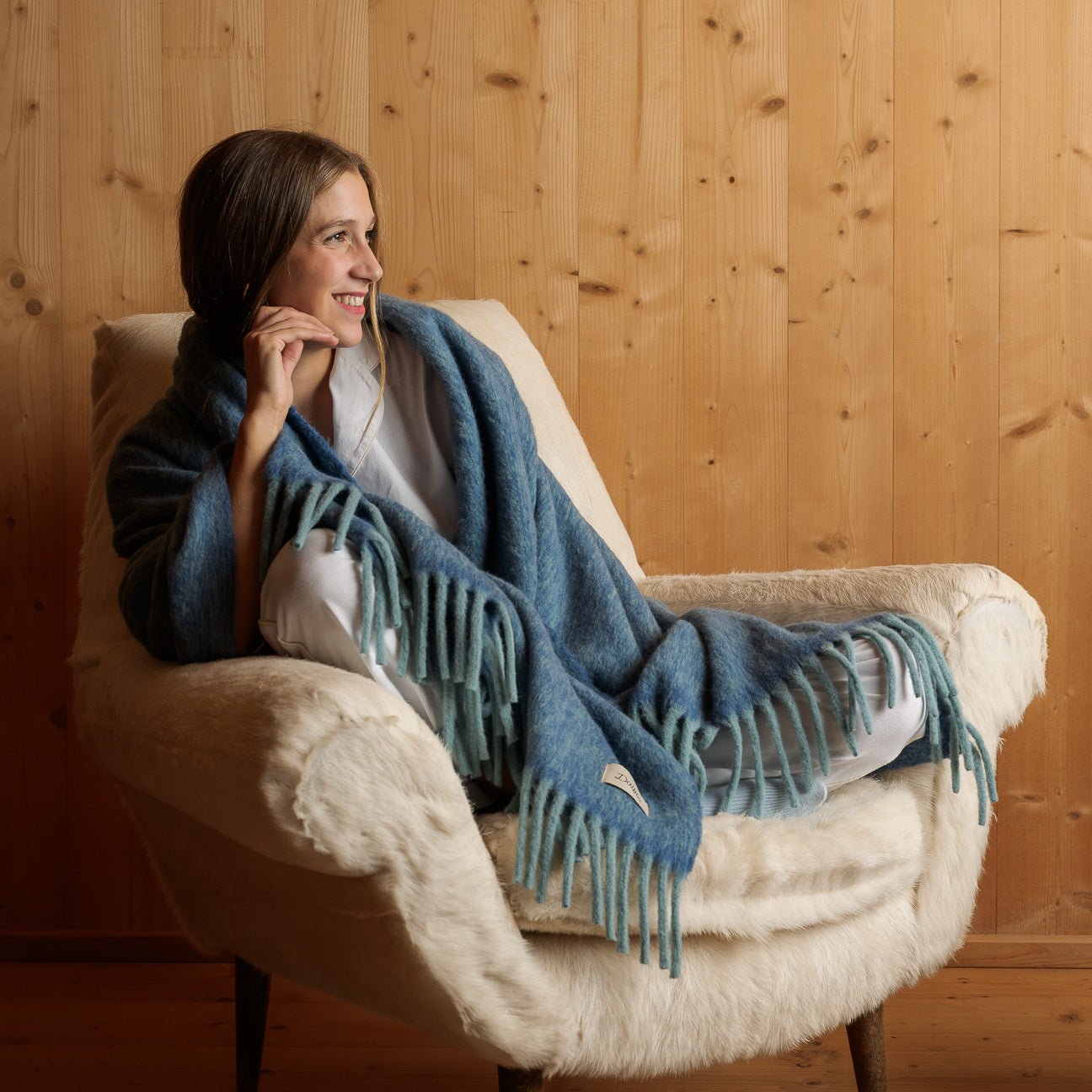 - 1 Decke aus Alpakawolle mit Fransen an den Seiten