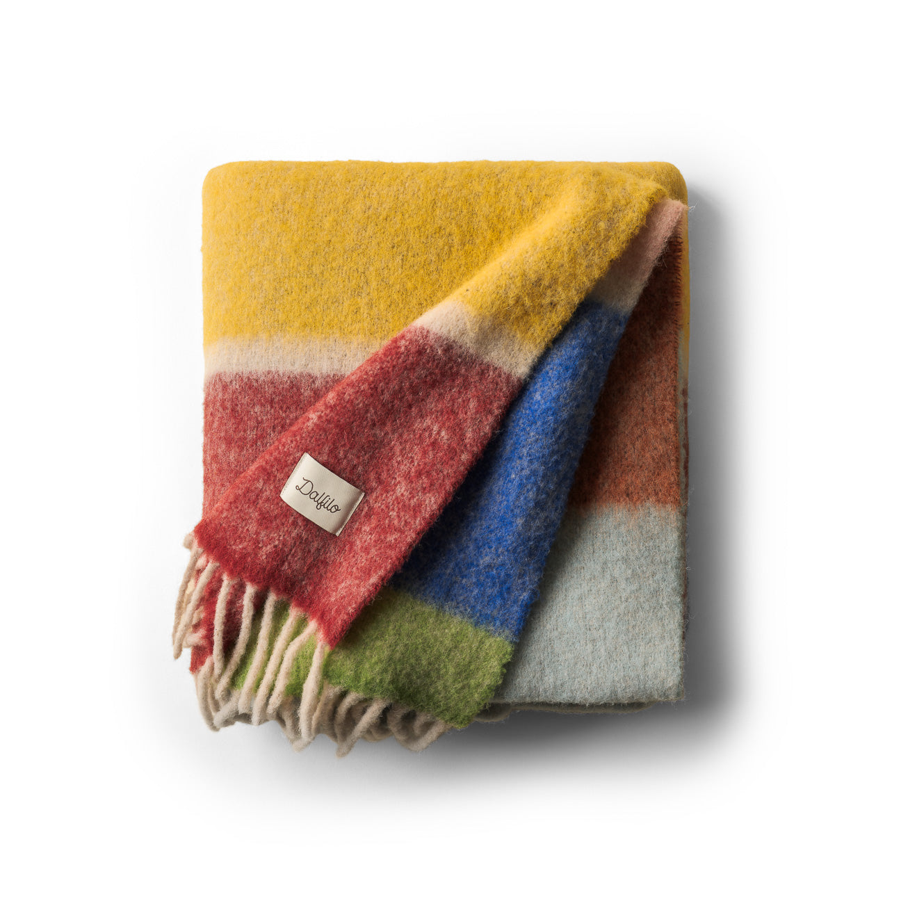 Aus der Verflechtung von acht Farbtönen entsteht die Dalfilo Alpaka-Wolldecke: eine leichte Faser, die selbst die kältesten Tage mit der Lebendigkeit der Farbe erwärmt.