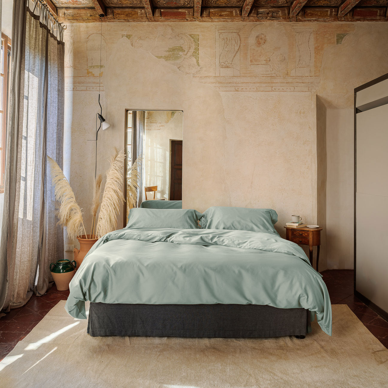 Jeder sorgfältig ausgewählte Baumwollfaden wird von den erfahrenen Händen unserer Handwerker gewebt, um einen Stoff zu schaffen, der Raffinesse und Eleganz vereint. Unser Ziel ist es, Ihnen nicht nur ein Höchstmaß an Schönheit zu garantieren, sondern auch einen Komfort, der Ihnen lange erhalten bleibt.