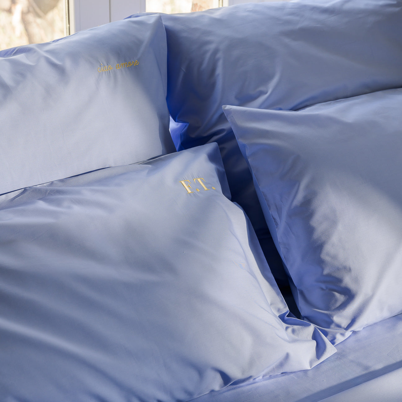 Verleihe Deiner Bettwäsche eine persönliche Note mit Deinen Initialen in der Garnfarbe und Schriftart Deiner Wahl. Unsere maßgeschneiderte Personalisierungsoption ermöglicht es Dir, aus einer Vielzahl von Garnfarben und Schriftarten zu wählen, um Deine Bettwäsche einzigartig und stilvoll zu gestalten. Die hochwertige Stickerei, die mit größter Präzision ausgeführt wird, macht Deine Bettwäsche zu einem langlebigen und besonderen Highlight in Deinem Schlafzimmer. Ideal auch als einzigartiges Geschenk für Freunde und Familie.