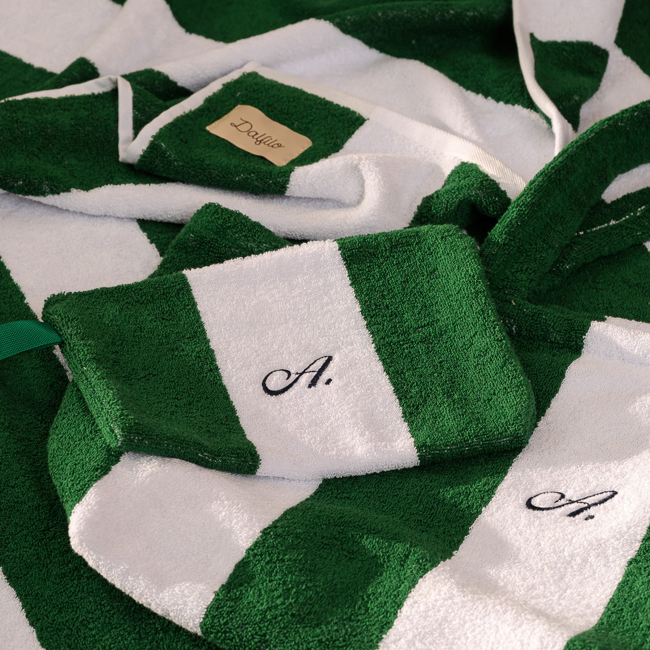 Jedes Teil der Dalfilo-Strandlinie entsteht am Webstuhl – aus dem Zusammenspiel von weißen und farbigen Garnen, garngefärbt mit der IDH-Technik für maximale Beständigkeit gegen Sonne, Chlor, Witterungseinflüsse und häufiges Waschen.
