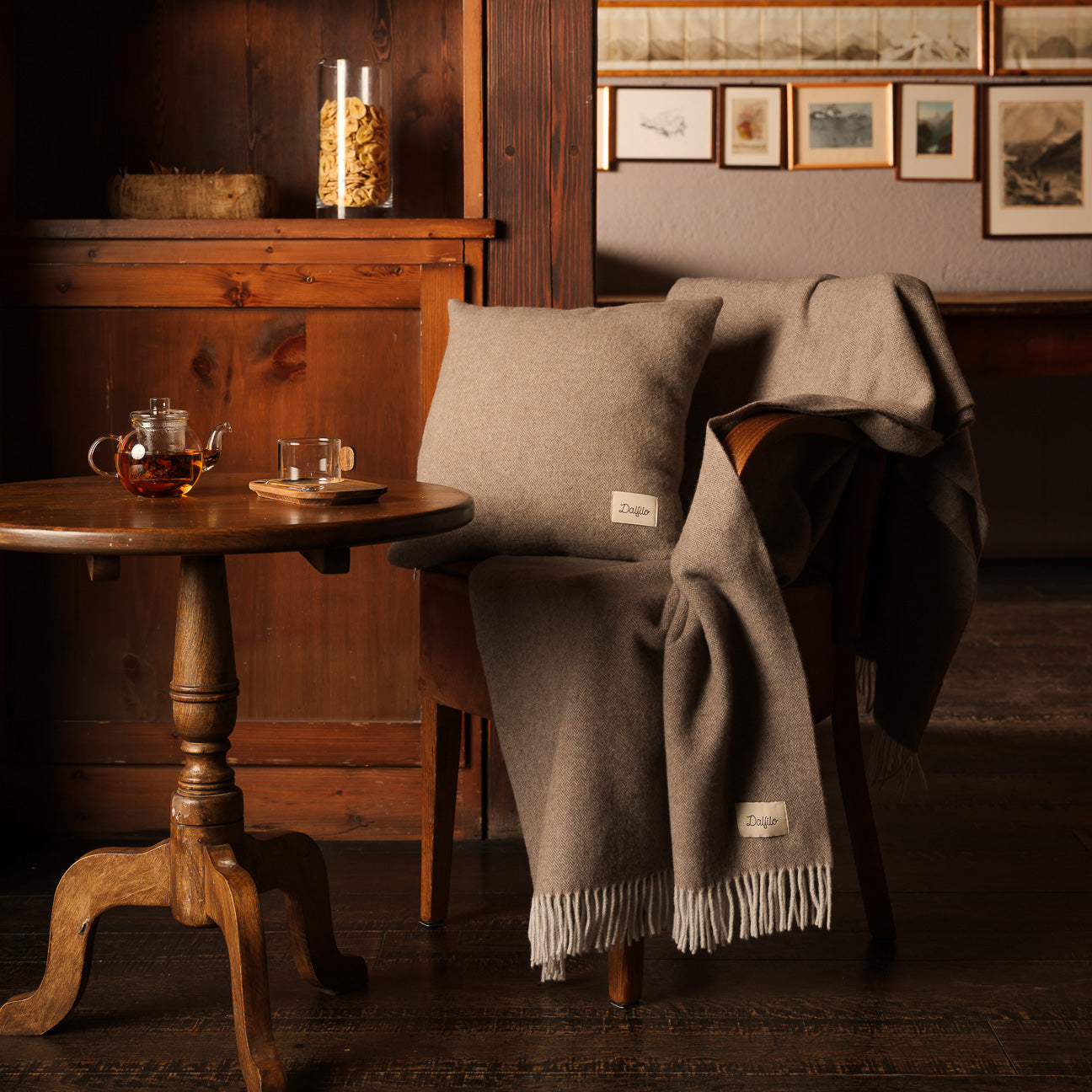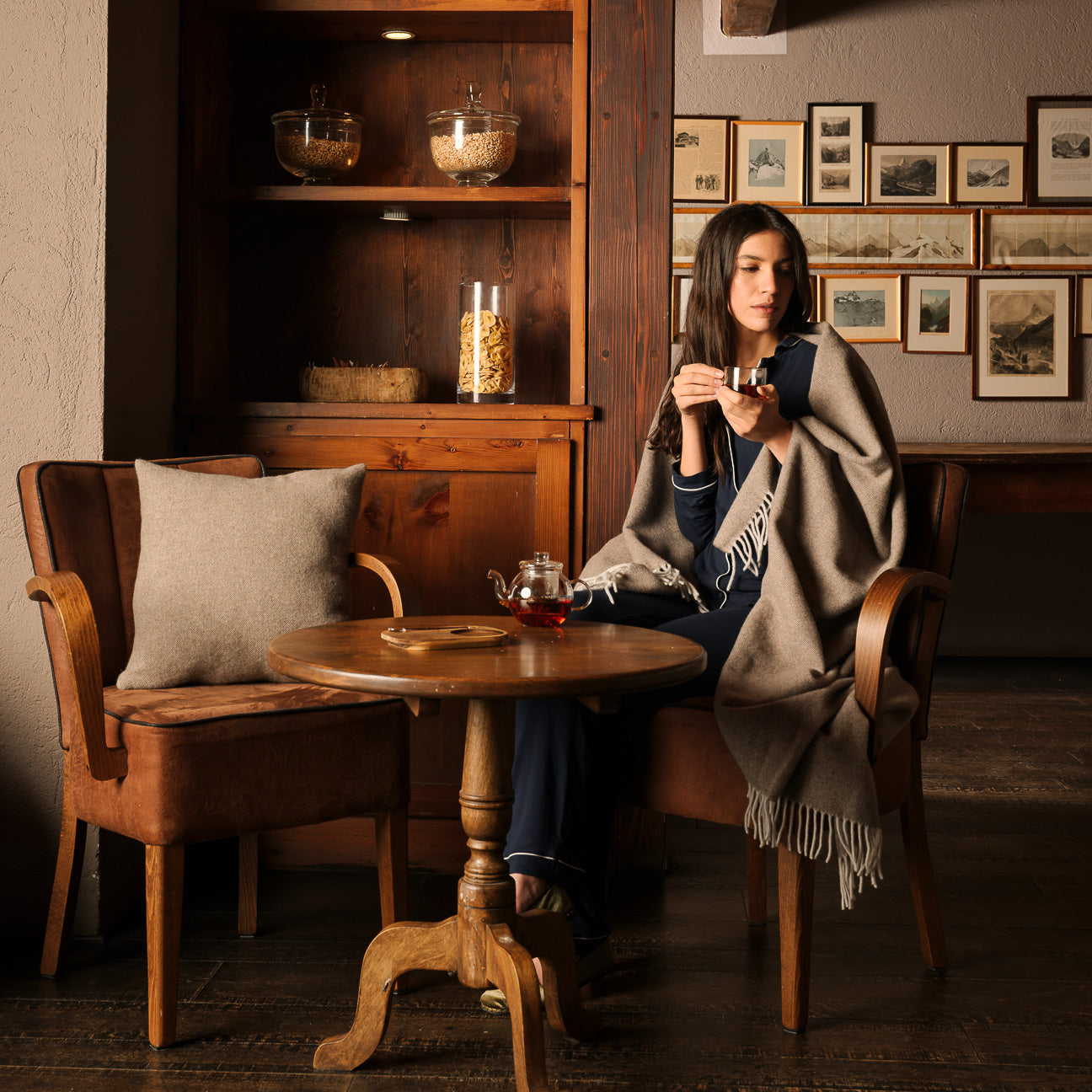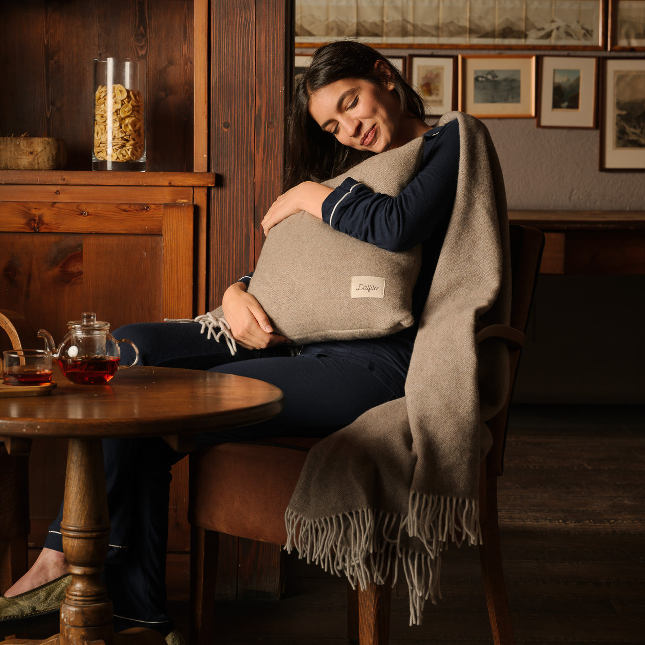 Wolle und Kaschmir sind natürliche Garne mit unglaublichen Eigenschaften: Sie isolieren, wärmen, fühlen sich weich an und sind vor allem ewig haltbar. Unsere Decken werden aus regenerierten Fasern hergestellt, die durch ein sorgfältiges Verfahren zur Aufarbeitung von recycelten Stoffen gewonnen werden, denen wir einen Anteil an Frischfasern hinzufügen. Das Ergebnis ist ein sehr weiches, anschmiegsames und langlebiges Garn mit geringer Umweltbelastung... Eine Kuscheldecke für uns und unseren Planeten.