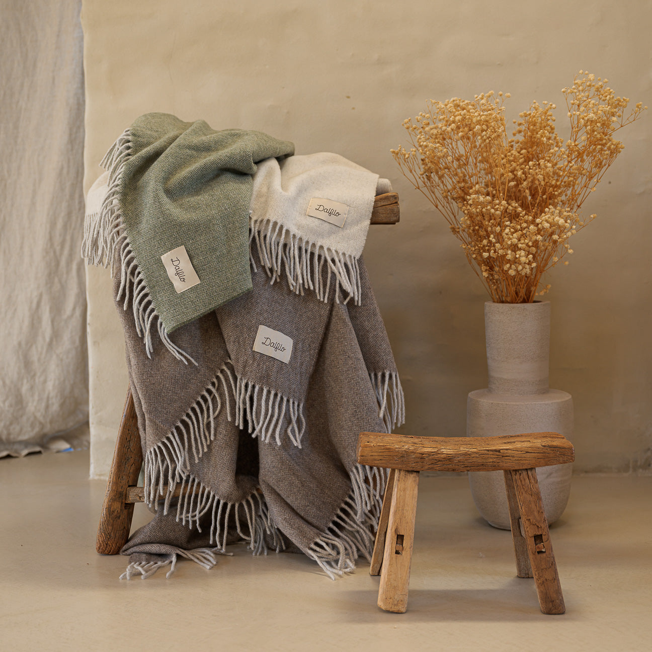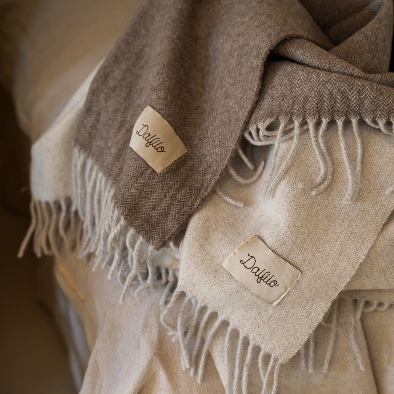 Wolle und Kaschmir sind natürliche Garne mit unglaublichen Eigenschaften: Sie isolieren, wärmen, fühlen sich weich an und sind vor allem ewig haltbar. Unsere Decken werden aus regenerierten Fasern hergestellt, die durch ein sorgfältiges Verfahren zur Aufarbeitung von recycelten Stoffen gewonnen werden, denen wir einen Anteil an Frischfasern hinzufügen. Das Ergebnis ist ein sehr weiches, anschmiegsames und langlebiges Garn mit geringer Umweltbelastung... Eine Kuscheldecke für uns und unseren Planeten.